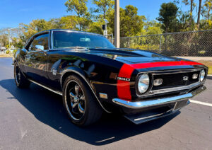Fuel-Injected V8, with LT1 Corvette drivetrain! Professionally built with absolutely NO expense spared, this Rust Free Southern Camaro features original body panels and floors and is finished in spectacular show-quality black paint with a deep, mirror-like shine. Built with the driver in mind – the perfect blend of iconic Camaro style & modern technology.