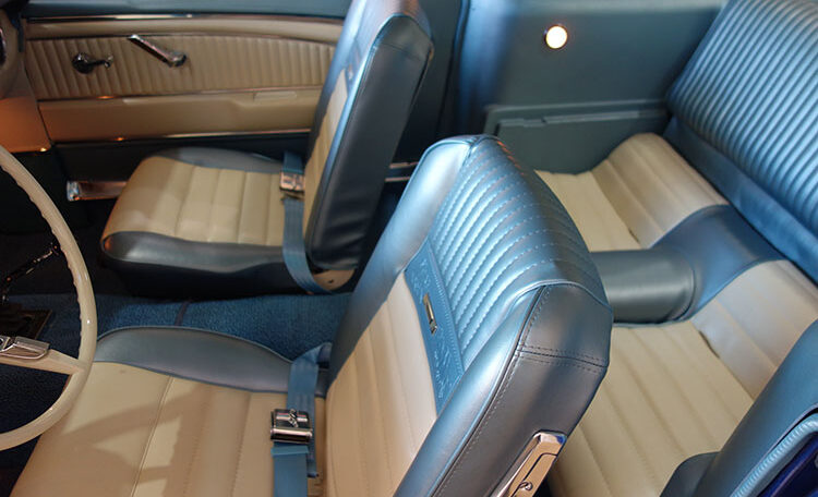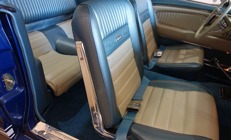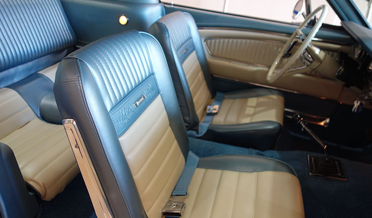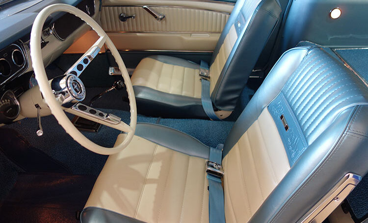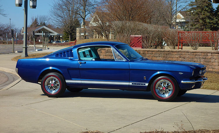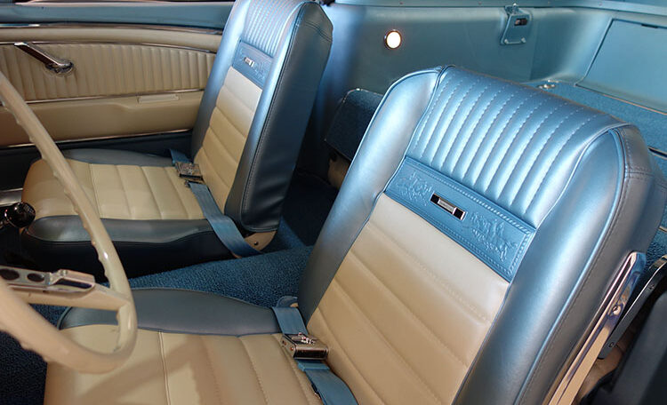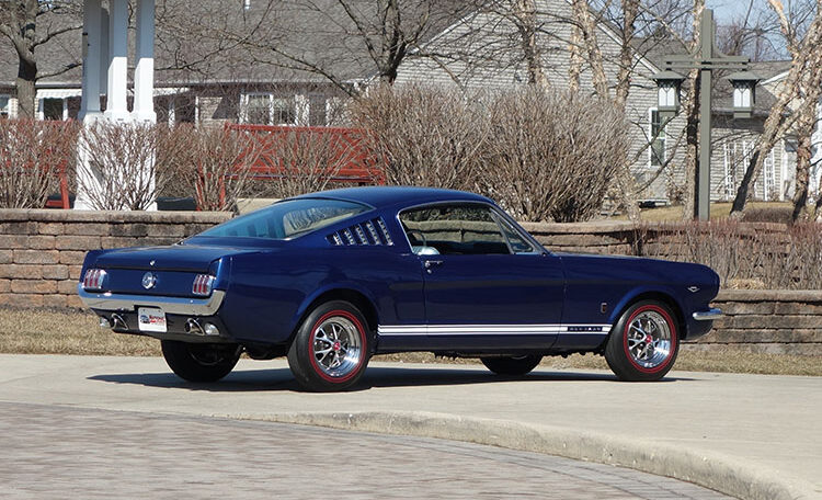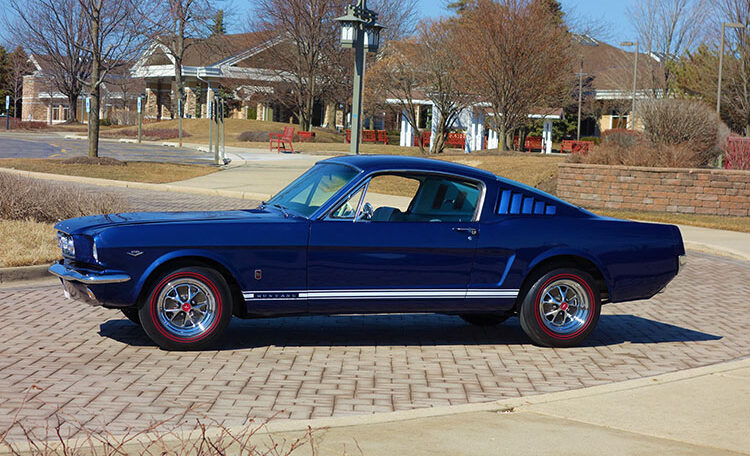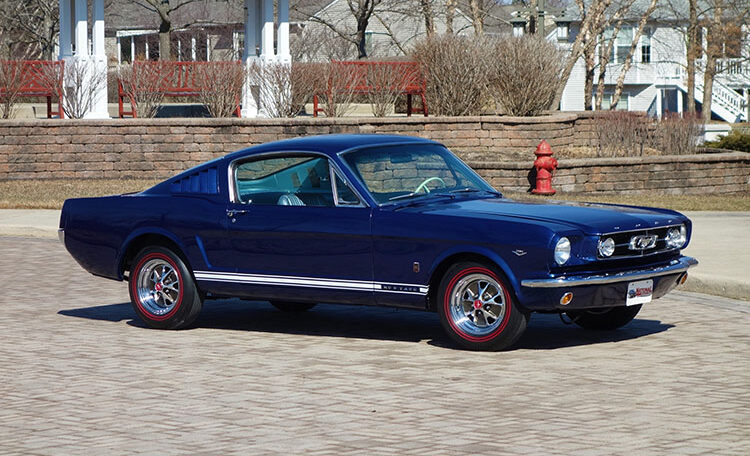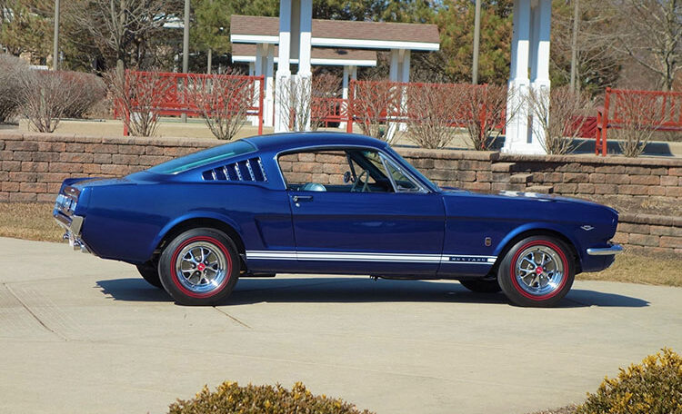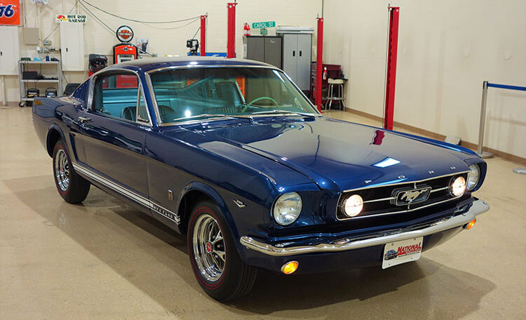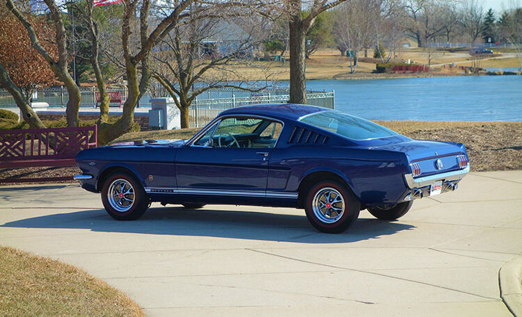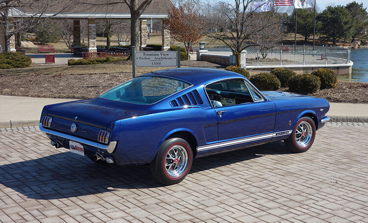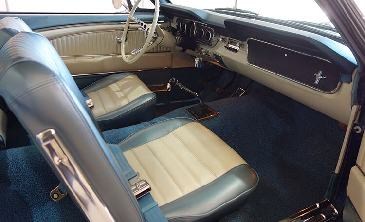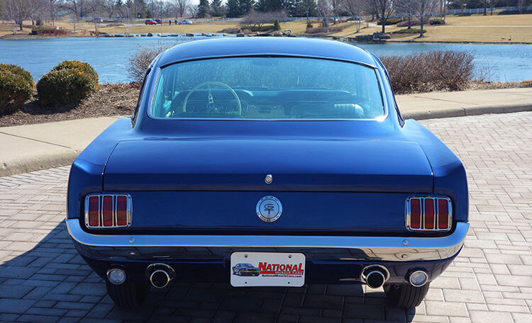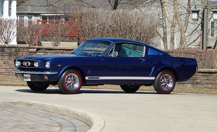 1965 Ford Mustang Fastback 2+2 GT equipped, Factory “A Code” with 4-speed manual transmission Produced June 3, 1965 in Dearborn, Michigan. This is an investment grade Mustang with show quality Caspian Blue exterior and gorgeous blue/white Deluxe Pony Interior.