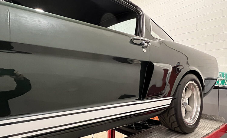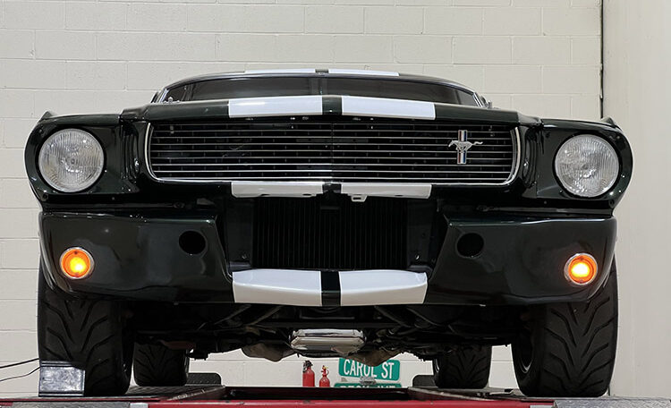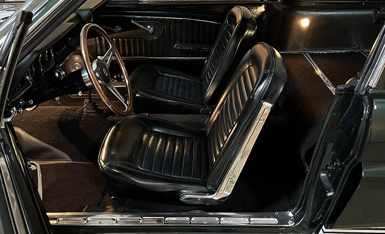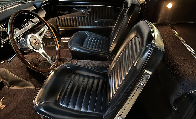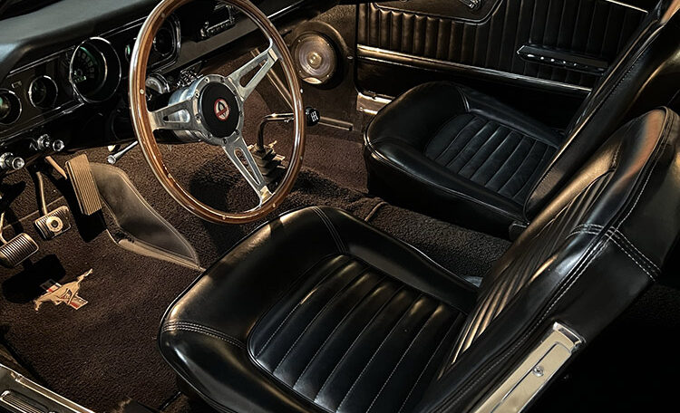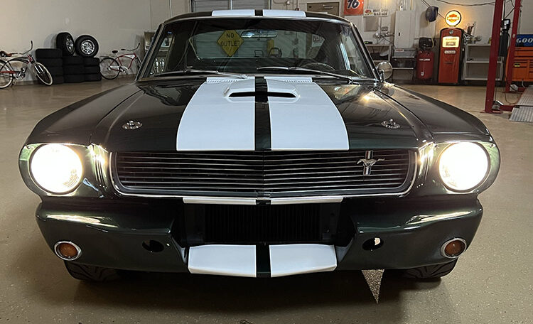 An exceptional find on all levels this fastback has Shelby GT350 styling throughout, including a Shelby GT350R fiberglass front end and hood, ’66 Shelby quarter windows, Shelby export brace, Shelby traction bars and Shelby GT 350 striping. This vehicle is amazing from top to bottom.