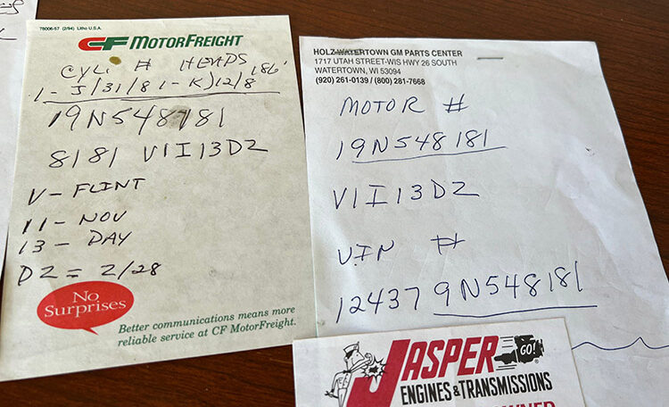 This car’s matching drive train numbers are shown towards the bottom of the images below. They are as follows: