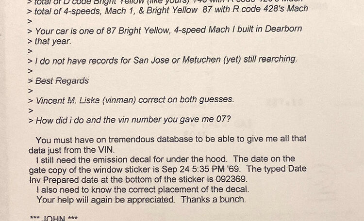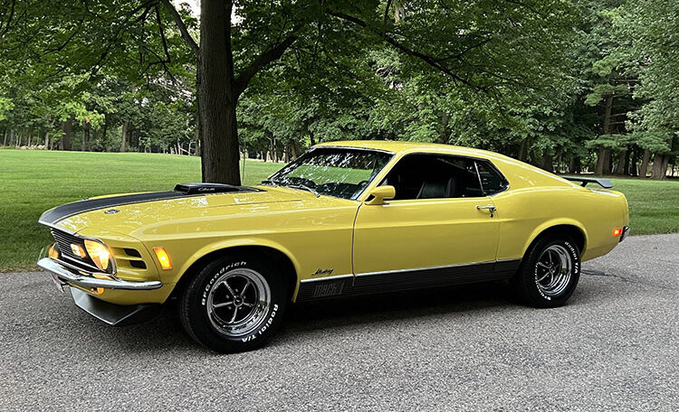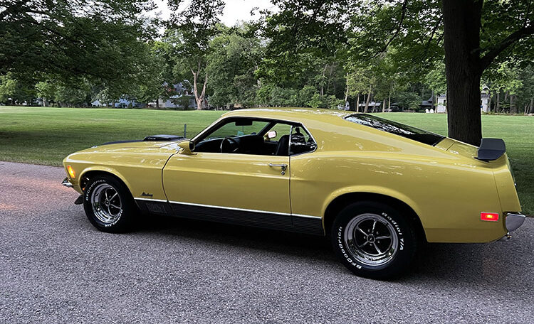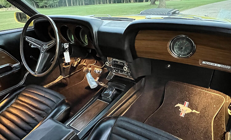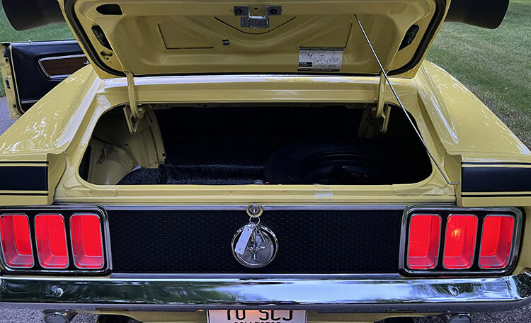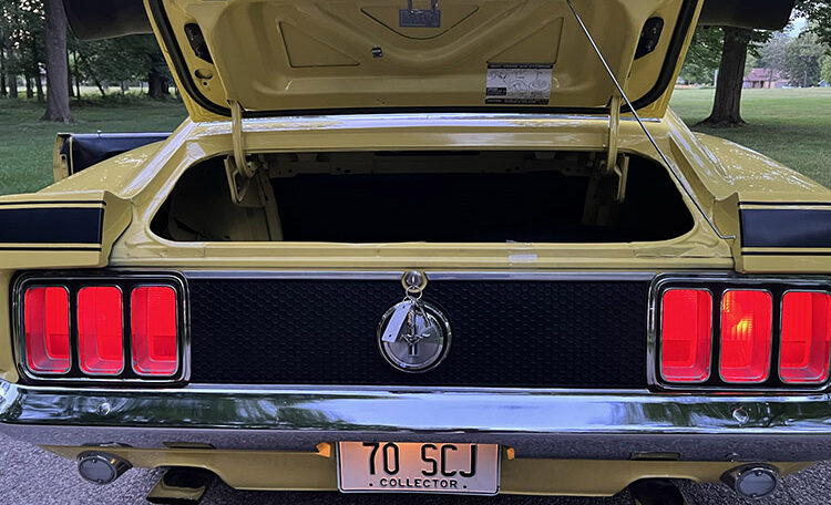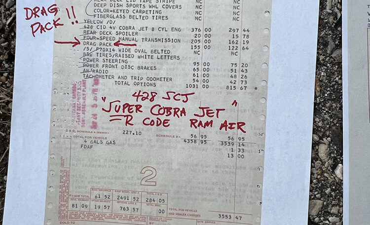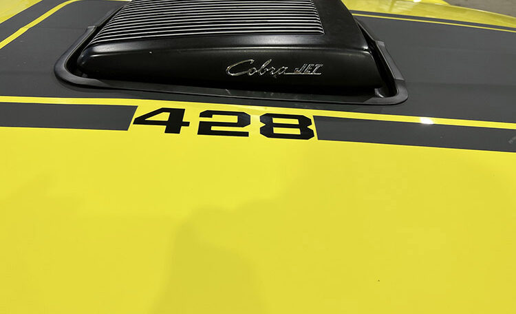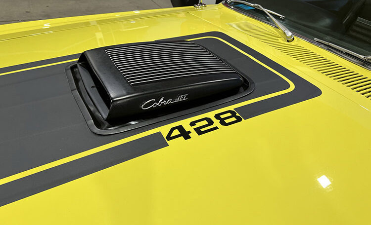 Ram Air Induction Shaker Hood “R Code”, date coded and correct 428 Super Cobra Jet with 4-Speed Close Ratio Manual Transmission and Drag Pack. Fully restored to Mustang Club of America standards. Believed to be 47,980 original miles.