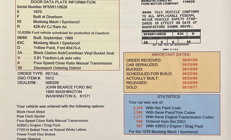 Rare, 1970 Ford Mustang Mach 1 428 Super Cobra Jet with FACTORY DRAG-PACK Option