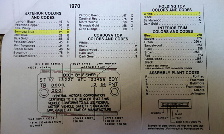 - Date Code “H019” = August 1, 1969 Build Date.