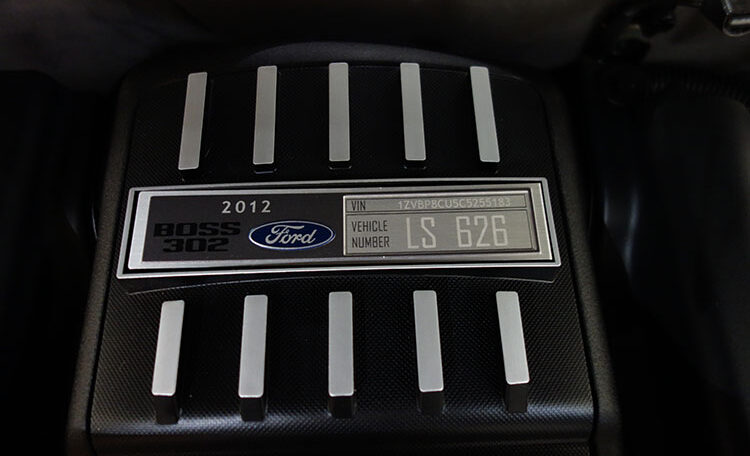 This Limited Edition Boss 302 Laguna Seca is #626 of only 767 produced. It has been owned by a renowned private collector in a well-known collection since new. It boasts only 1,084 original and documented miles. It wears the stunning color combination of black with bright red accents. The factory plastic is still in place on the Boss 302 embroidered floor mats.